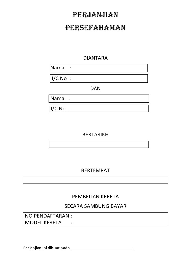 Muat Turun Surat Perjanjian Sambung Bayar Kereta Boleh Edit Rujukan Niaga from 2.bp.blogspot.com Maybe you would like to learn more about one of these? Surat perjanjian jual beli kereta kaedah sambung bayar pdf. We did not find results for: Check spelling or type a new query.
